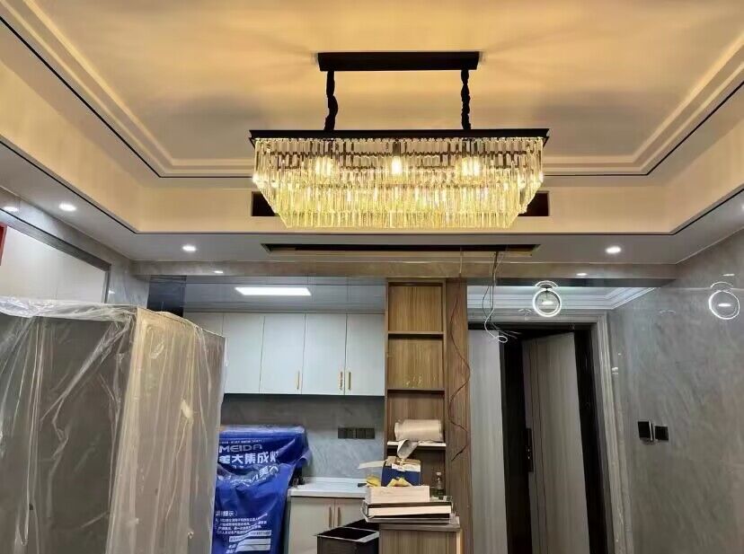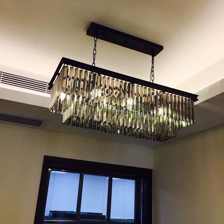 This rectangular dining table chandelier is available in three colors: amber, smoky gray, and clear light. American retro light luxury style, whether hanging above the dining table or used in the kitchen long island table, or bar, coffee table, can give off infinite charm, fashion and retro combination, this explosive dining table light worth you have!